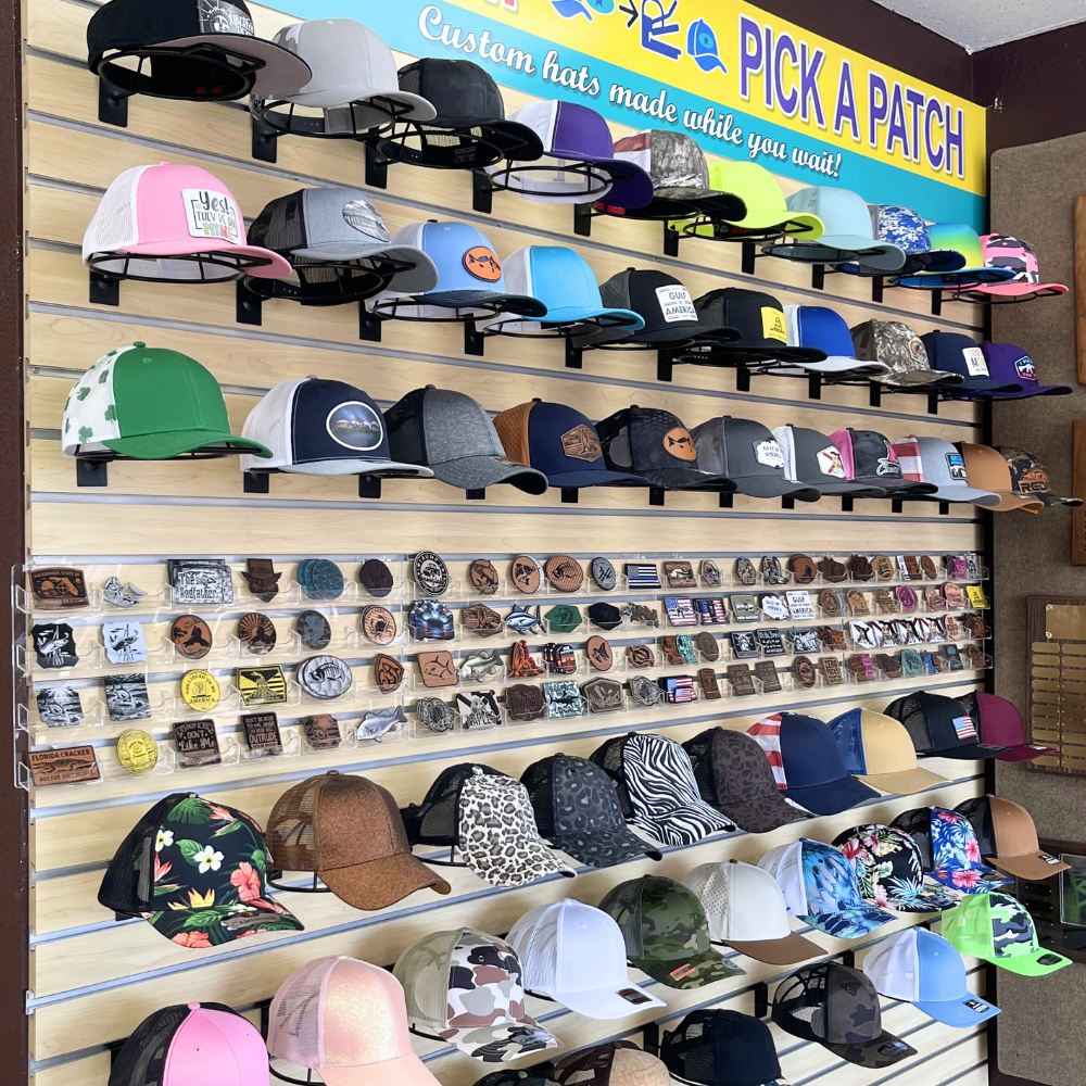 If you’re looking for something unique, or uniquely Naples, come by the showroom and browse over 100 patches and hats we have on display. Mix and match your preferred combo and we will heat-press it to order while you wait. There’s something for even the most avid hat wearers and collectors.